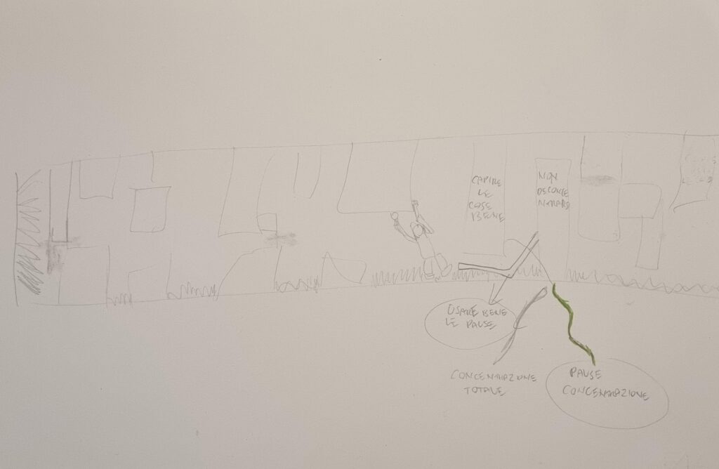 La cosa straordinaria è stata vedere come, dopo questa visualizzazione e narrazione, sia nata in lui l’esigenza di disegnare questo percorso. Disegnando, quegli ostacoli astratti hanno preso forma e, finalmente, hanno avuto un nome: la difficoltà di concentrarsi e la fatica nel capire le cose per bene.